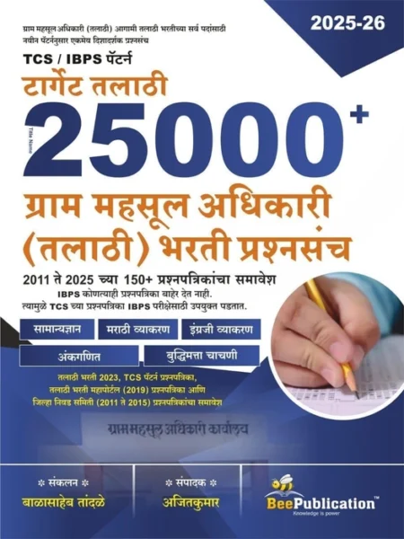 Bee Publication – Target Talathi 25000+ TCS/IBPS ग्राम महसूल अधिकारी ( तलाठी ) भरती प्रश्नसंच 2011 ते 2025 च्या 150+ प्रश्नपत्रिकांचा समावेश