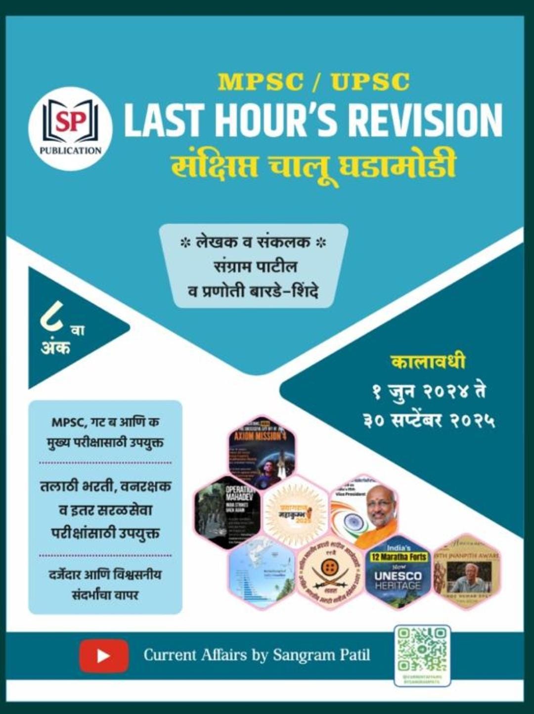 संग्राम पाटील Last Hour Revision Year Book 2025 – संक्षिप्त चालू घडामोडी -8 वा अंक -(1 Jun 2024 – 30 Sept 2025) Sangram Patil /Pranoti Shinde
