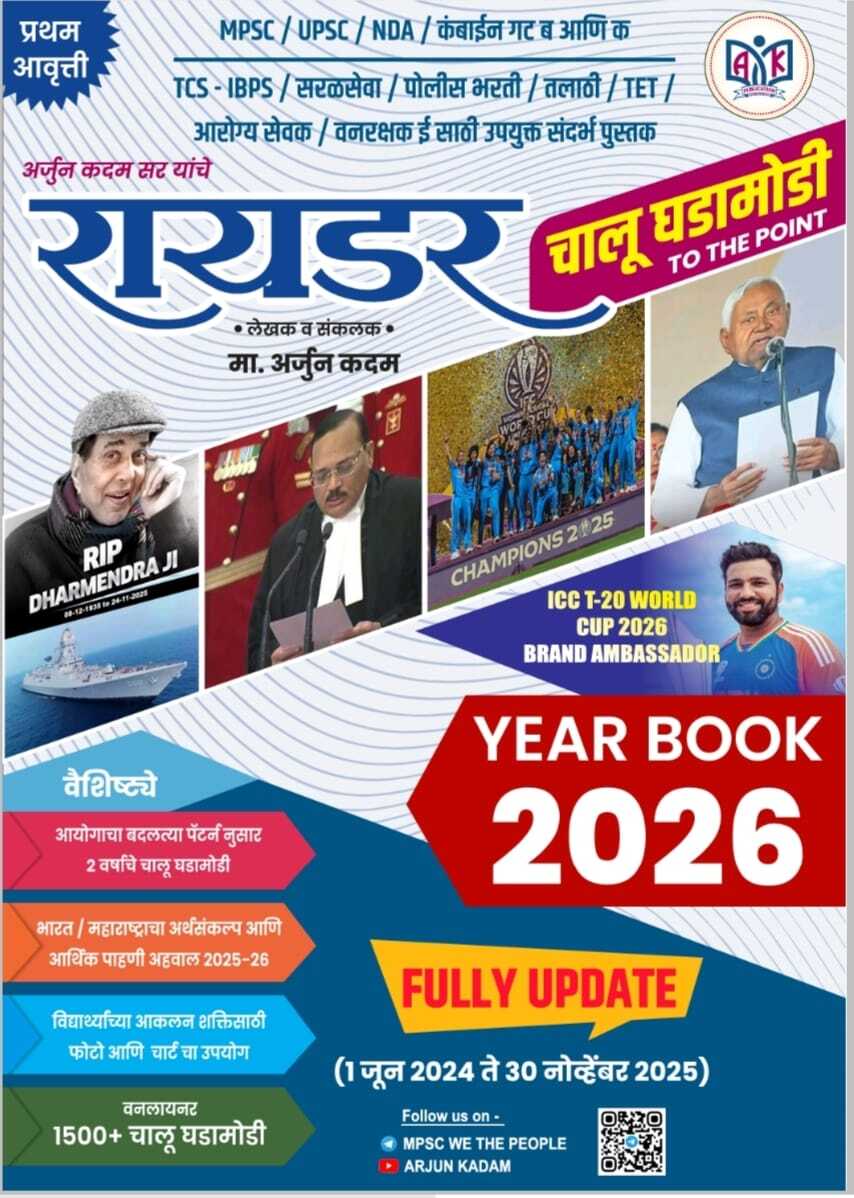 Chalu Ghadamodi / चालू घडामोडी books are Marathi language current affairs guides that help candidates prepare for competitive exams by summarising recent important events across various categories, arranged timeline-wise for ease of study.