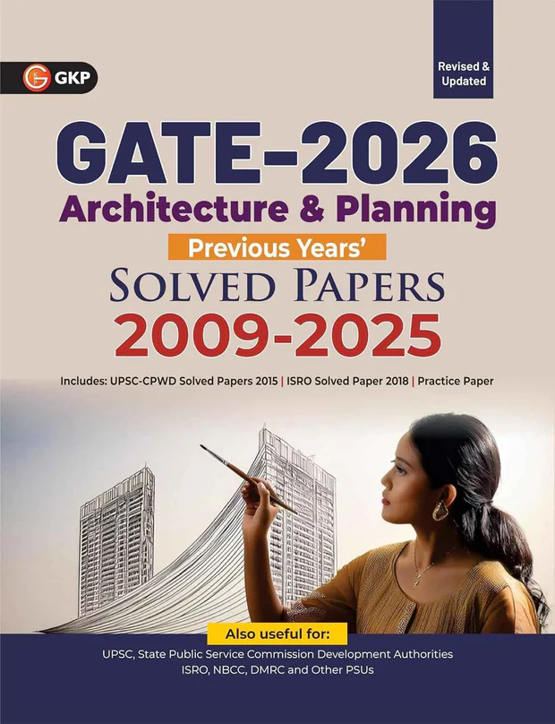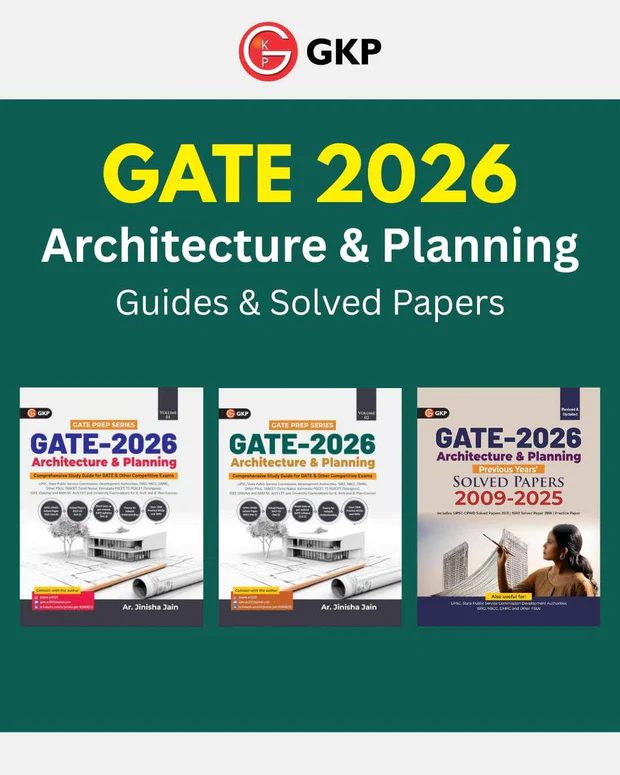 Unleash your full potential for GATE 2026 Architecture & Planning with GKP’s comprehensive 3-Book Preparation Set, meticulously authored by gold medalist Ar. Jinisha Jain. This all-in-one package includes Volumes I & II, offering in-depth, syllabus-aligned theory on core topics from urban design to building services.