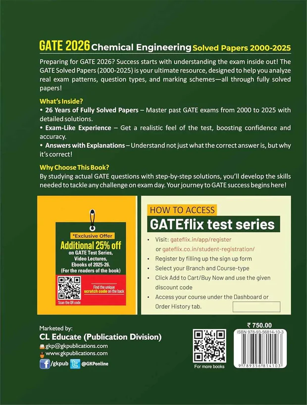 Achieve your dream PG admission or PSU job with GKP’s GATE 2026 Chemical Engineering: Solved Papers (2000-2025). This essential guide provides detailed explanations for a vast collection of previous years’ questions, enabling smarter and more structured preparation.