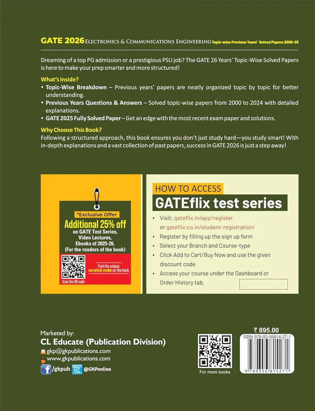 Dreaming of a top PG admission or a prestigious PSU job? Your journey to success in the GATE 2026 Electronics & Communication Engineering exam starts here! This book, “Topic-wise Previous Years Solved Papers”, is designed to make your preparation smarter and more structured. It meticulously organizes all previous years’ papers from 2000 to 2024 by topic, ensuring a deeper understanding of each subject area.