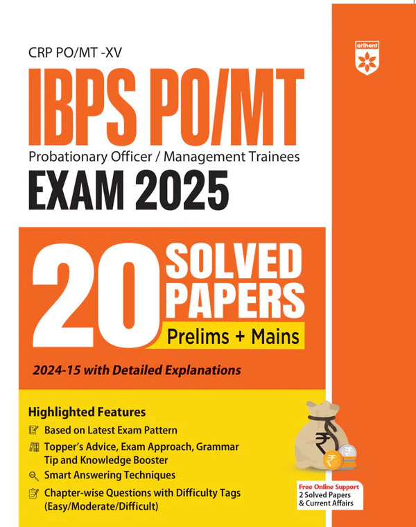 IBPS PO/MT Exam 2025 – 20 Solved Papers (Prelims + Mains) is a comprehensive practice book designed for aspirants preparing for the IBPS Probationary Officer and Management Trainee recruitment exams. Covering exam years from 2024 to 2015, the book focuses on both Preliminary and Main exams to provide targeted, exam-oriented preparation.